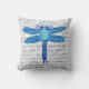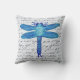 ¡Una libélula azul brillante sobre un fondo de texto hace una almohada encantadora para tu espacio de vida al aire libre! Elija la tela exterior para la silla de porche u otro salón exterior. También disponible en tejidos interiores. Reproducido a partir de mi acuarela original.
