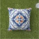 This design features a colorful pattern inspired by Portuguese azulejo tiles in blue, white and orange. Ideal for adding a splash of summer color to your patio, porch or deck!