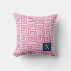 Cojín De Exterior Preppy Greek Key Monogram – Hot Pink & Navy