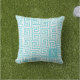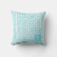 Cojín De Exterior Preppy Greek Key Monogram – Turquoise & White