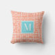 Cojín De Exterior Preppy Square Lattice Monogram - Coral & Turquoise