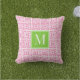 Cojín De Exterior Preppy Square Lattice Monogram – Pink & Lime
