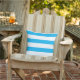 Relájese en el porche de verano o en el patio con esta almohada azul cielo brillante y blanca al aire libre. Personalizar a cualquier color. Ambas caras de la almohada son de rayas horizontales azules y blancas, con un diseño sencillo y moderno.