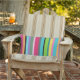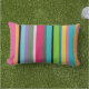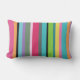 Este lumbar cojín está adornado con rayas vibrantes en tonos rosas, rojos, amarillos, verdes, morados, negros, naranjas, turquesas y mucho más.