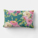 Esta verde azulada almohada de dos tiradas luce una romántica estampada de rosa floral en tonos rosa y crema.