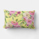 Rosas de acuarela exuberantes en tonos rosa, rojo, melocotón y crema sobre un fondo limón amarillo en esta almohada femenina de tiro.