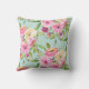 Rosas de acuarela exuberantes en tonos rosa, rojo, melocotón y crema sobre un fondo acuático polvoriento en esta almohada de tiro femenino.