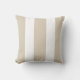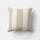 This neutral modern outdoor pillow features a pattern of five broad vertical cabana stripes in sand beige and white.