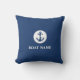 Su nombre de barco Rope & Anchor White y Cojín decorativo azul de la Marina.