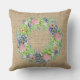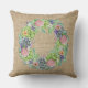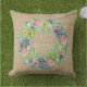 Con esta almohada de tiras, adornada con una corona exuberante de suculentos, flores rosas, ruidosas y melocotones, con toques de follaje violeta.