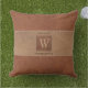 La almohada de tono de cuero con franja castaña marrón es una adición clásica a su decoración al aire libre con un diseño gráfico de cuero cálido y rico. Personalice con su monograma y nombre.