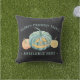Haga que los trucos o tratantes con alergias sepan que su casa es imprescindible con esta dulce almohada de porche al aire libre. El diseño incluye un sonriente gato verde azulado de calabaza de linternas flanqueado por pequeñas calabazas, con "productos apetitosos para alergias" en letras verde azuladas.