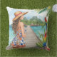 Tropical island Beach and Lovely Women Outdoor Pillow