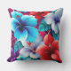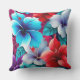 A Colorful Outdoor Patio Pillow Designed With A Tropical Hibiscus Red, Blue, And Purple Flower
