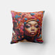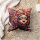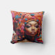 Esta sorprendente obra de arte es una imagen vibrante y surrealista de una figura que mezcla elementos africanos tradicionales con estética audaz y futurista. La figura central es una mujer con piel de color azul, lo que le da una presencia casi etérea u otra en el mundo. Su expresión es serena, con ojos grandes y expresivos y labios completos. Su cabello es una explosión de formas abstractas que se asemejan a nubes coloridas y rizos intrincados, lo que sugiere creatividad, pensamiento o posiblemente un símbolo de sabiduría e imaginación parecido a una corona. Los tonos vívidos (desde rosa, azul, naranjas y rojos) dan vida a la composición y evocan un sentido de energía y vitalidad. El fondo incluye una abstracta escena de pueblo africano, con casas modernizadas pero rústicas que se mezclan con formas ecológicas de ensueño. El cielo transita de un azul calmante a tonos más cálidos, ofreciendo una sensación de paz y dinamismo, como si la escena existiera entre dos mundos -tal vez el real y el imaginario, o el pasado y el futuro. Este trabajo parece simbolizar la fusión del patrimonio africano con una visión audaz del futuro. El pañuelo y los adornos de la mujer representan la belleza tradicional africana, mientras que los colores y elementos surrealistas apuntan hacia el espíritu innovador e imaginativo. La imagen se puede ver como una celebración de la cultura, identidad y resiliencia africana, expresada a través de una mezcla de tradición y creatividad con visión de futuro.