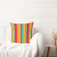 Una almohada con un diseño de rayas colorido y original.