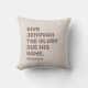 Añada un toque de aliento espiritual a su casa con esta almohada que muestra el texto de 2025 años: "Dale a Jehová la gloria por su nombre" (Salmo 96:8). Esta almohada acogedora e inspiradora es una excelente adición a su sala de estar o dormitorio. Personalizable completo, usted puede elegir el idioma y los colores del texto para hacerlo único suyo o para que coincida con su decoración de casa.