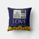 Collage de fotos de boda elegante girasol azul marino y blanco guión Almohada de boda con collage de fotos, con un marco sobre un collage de 3 de tus fotos.