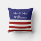 El nombre de la nueva pareja decora esta almohada roja, blanca y azul, lo que la convierte en un gran accesorio para la mesa de los enamorados, o el nuevo hogar.