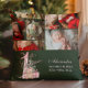 Celebrate your baby girl’s very first Christmas with this heartwarming holiday photo card! Featuring a soft watercolor teddy bear, festive pink gifts, a pastel tree, and space to highlight your newborn’s name, birth date, weight, and height — this card is the perfect keepsake for proud new parents. The rich forest green background and cozy photo layout make it both classic and charming. A must-have for sentimental moms and holiday magic lovers.