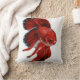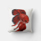 The primary subject is a Betta fish, predominantly red, with intricate fins that display a flowing, graceful form. The fish has characteristic features, including a small, pointed head with a visible eye. The fins are long and flowing, with some areas highlighted with white or light blue, enhancing the dynamic effect of movement. The scales are meticulously rendered, adding to the realism and showcasing the play of light. The mouth is slightly open, as if the fish is in motion, adding to the feeling of life and movement.