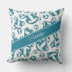 Los colores de este equipo de voleibol genial arrojan almohadas para chicas con un patrón de baloncesto verde azulado de voleibol blanco de tamaño variado, girado en todas partes sobre un gráfico de detalles de red de voleibol - los paneles verde azulados de las bolas de voleibol se mezclan con un patrón artístico y giratorio - personaliza su nombre con un sofisticado tipo de letra manuscrita en una franja de color verde azulada negrita, angota de ancho y ancho completo - los colores de fondo y los colores de color son personalizable - katz d_zynes