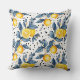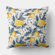 Cojín Decorativo acuarela bosquejada con detalles de hojas azules,