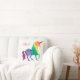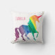 Almohada fresca personalizada de la diversión de la acuarela del unicornio del arco iris. Diseño en ambos lados. Personalice esta diversión y regalo colorido del unicornio en fuente rosada brillante. Silueta del unicornio en un arco iris de las pinceladas de la acuarela de rojo, de anaranjado, de amarillo, de verde, el azul y la púrpura. El fondo blanco deja los colores brillantes destacarse maravillosamente. Regalo de la diversión para los niños, tweenes, y adolescencias que aman unicornios y a criaturas mágicas. Colorido, moderno y elegante.