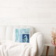 Inspirada en los maravillosos, relajantes y relajantes colores del vidrio del mar, la obra de arte fue pintada a mano con acuarelas por la artista y diseñadora Audrey Jeanne Roberts. Las espléndidas siluetas estampadas de una ballena de superficie, una tortuga marina verde y un caballito de mar están dispuestas en un patrón de estilo collage con texto tipográfico sobre un fondo de madera de cabaña blanca. En el reverso hay un patrón de medio gota con estepas, algas, tortugas marinas, ballenas y torres y patrones geométricos. Derechos reservados.