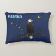 Un águila calva dispara el cielo desde su posición sobre una rama de árbol; superpuesto sobre una bandera de Alaska. El texto que dice "Alaska" también aparece en azul brillante y blanco. Añadir texto adicional en el reverso.