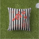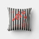 Esta almohada de tiro al aire libre se muestra en unas tiras blancas y negras lindas y flores tropicales rojas impresas. Personalizar este artículo o simplemente compra tal cual.