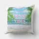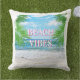 Esta almohada con acento exterior se muestra con una palmera de playa de Beach Vibes. El color de almohada es blanco. Personalice esta almohada con esta plantilla.