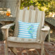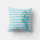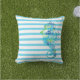 Tirar la almohada exterior mostrada con un diseño de tiras azul turquesa y blanco adorable con un caballito de mar. Personalizar este artículo o compra como está, elige entre tres tamaños.