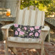 Esta almohada de acento al aire libre se muestra con una hermosa huella de flores rosadas. Color Black Personalizar este artículo o compra tal como está. Imagen de stock freepik.com