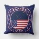 Insignia de Alaska con bandera de Alaska y bandera de los colores de Estados Unidos, forma redondeada. Emblema de Alaska. Sello de Alaska. Colección de Estados Unidos.