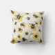 Almohadón floral pastel acuarela amarillo con flores amarillas, negras y blancas sobre un fondo blanco en almohadón de acuarela.