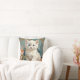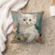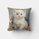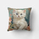 Almohada con un gato blanco al estilo de Alphonse Mucha! Este gatito de ojos azules y esponjoso posa con flores rosadas y mantas azules. ¡Un regalo fabuloso para los amantes del gato y de los coleccionistas Art Nouveau!