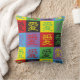 El personaje chino por el amor hecho en un estilo de arte pop con una paleta de colores de verde, azul, rojo, morado, negro y amarillo en una almohada de tiro
