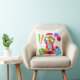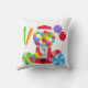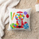 Si te gustan los dulces y los diseños divertidos con colores vivos, te encantará esta almohada dulce con una máquina de gumballos multicolores, copas de caramelos rocosos y otros dulces de colores vivos y llamativos.