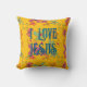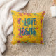 Me Encanta El Cojín decorativo De La Fe Cristiana De Jesús. Flores dibujadas a mano sobre un fondo amarillo brillante. ¡Disfrútalo!