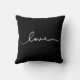 Almohadilla cuadrada de amor escrita a mano blanca sobre fondo negro