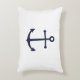 Moderna almohada de acento náutico Minimalista con ancla azul marino sobre fondo blanco. Perfecto como decoración de casa de playa, regalo de bienvenida y más.