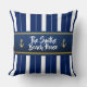 Cojín Decorativo Anclaje dorado en franjas azules nautical
