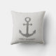 Elegantes tradiciones de familia náutica, ancla gris sobre Cojín decorativo gris plateado. El texto se puede personalizar.