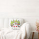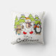 Un lindo y colorido Navidad diseño de vacaciones arroja almohada con un oso polar, pingüino y ratón, todo con bufandas y patines de hielo con árboles cubiertos de nieve y texto que lee ¡Son Navidades!