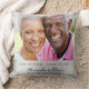 Una almohada como regalo, celebrando un 25 aniversario de bodas de plata. Un elegante fondo plateado falso. Personalice y agregue su propia foto de alta calidad de la feliz pareja. El texto: Los nombres están escritos con una tipografía moderna de letra manuscrita negra. Plantillas para nombres y una fecha.