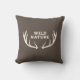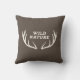 Una almohada marrón con un ilustracion de ciervos y un texto completamente personalizable: "Naturaleza salvaje" en estilo rústico! Añade un toque de naturaleza salvaje a tu decoración casera.