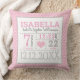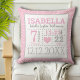 Almohada de anuncio de nacimiento de niña adorable con lunares rosados y blancos y un dulce corazón rosa. Edite para incluir todos los detalles del nacimiento de su precioso bebé.