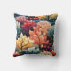 almohada decorativa con naranjas coloridos, verde azulados y amarillos.
