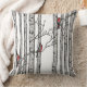 Esta moderna almohada de tiro de algodón en temporada de invierno y feriado incluye abedules dibujados a mano con pájaros cardenales rojos sobre ramas de tinta negra, con un elegante fondo blanco. Impreso en ambos lados.